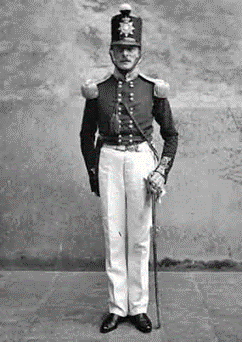 According to the 1851 Channel Island census, Frederick, now age 24, continues living with his mother, Esther, and two servants; one from Ireland and the other from France. His profession is listed as Captain in the 5th Regiment of the Royal Militia of the Island of Jersey. Formed in 1337, the Royal Jersey Militia is the oldest regiment in the British Army. The British Press Royal Jersey Almanac for the Year 1853 publishes all the commissions of officers in the Royal Militia of the Island of Jersey and states that on June 14, 1850, Frederick La Cloche Nicolle was commissioned a captain in the 5th or Southwest Regiment of the Royal Militia of the Island of Jersey. It also includes that on September 26, 1845, Frederick’s half-brother, Joshua John Le Touzel, was commissioned a captain in the 1st or Northwest Regiment, Field Battery in the Royal Artillery. The photo below models the uniform that was worn at the time.
